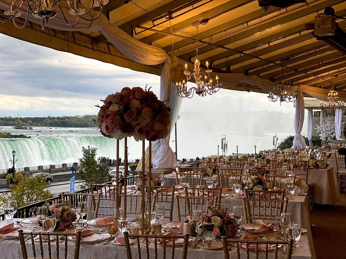 Perched on the upper level of the historic Queen Victoria Place, this venue offers panoramic views of the iconic Niagara Falls. Couples can dine outdoors on a covered terrace, enjoying locally sourced cuisine, a curated Niagara VQA wine list, and craft beers. From daily falls illuminations to spectacular fireworks, every celebration here is framed by the majesty of one of the world’s most famous natural wonders.